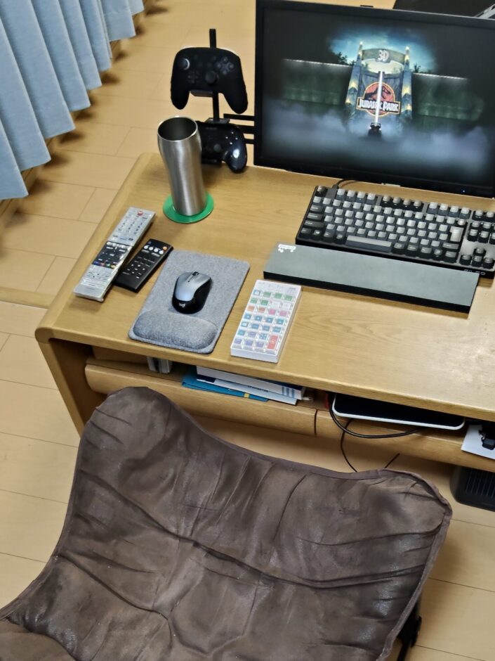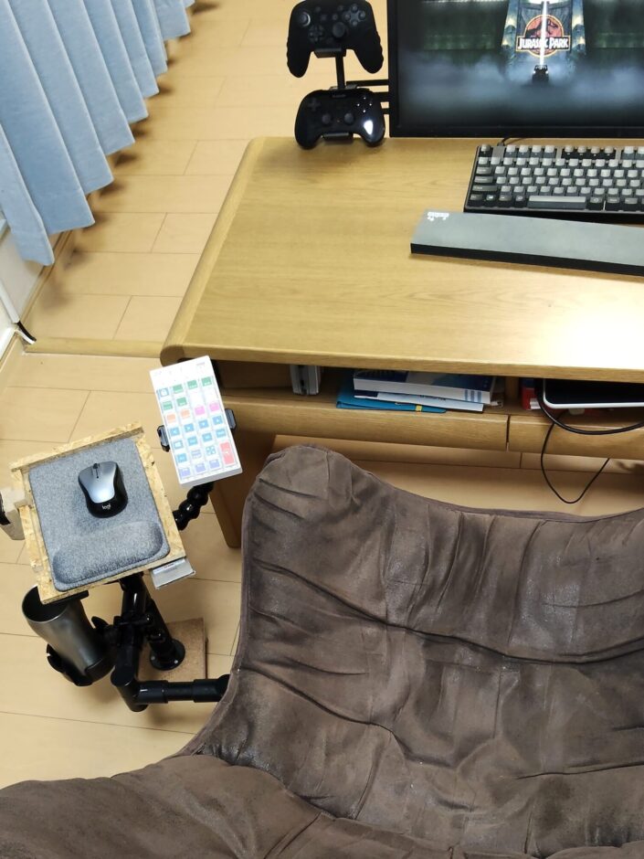 今までと違い背もたれに深く座った状態でもリモコン、マウスに手が届くのでとても便利になりました。