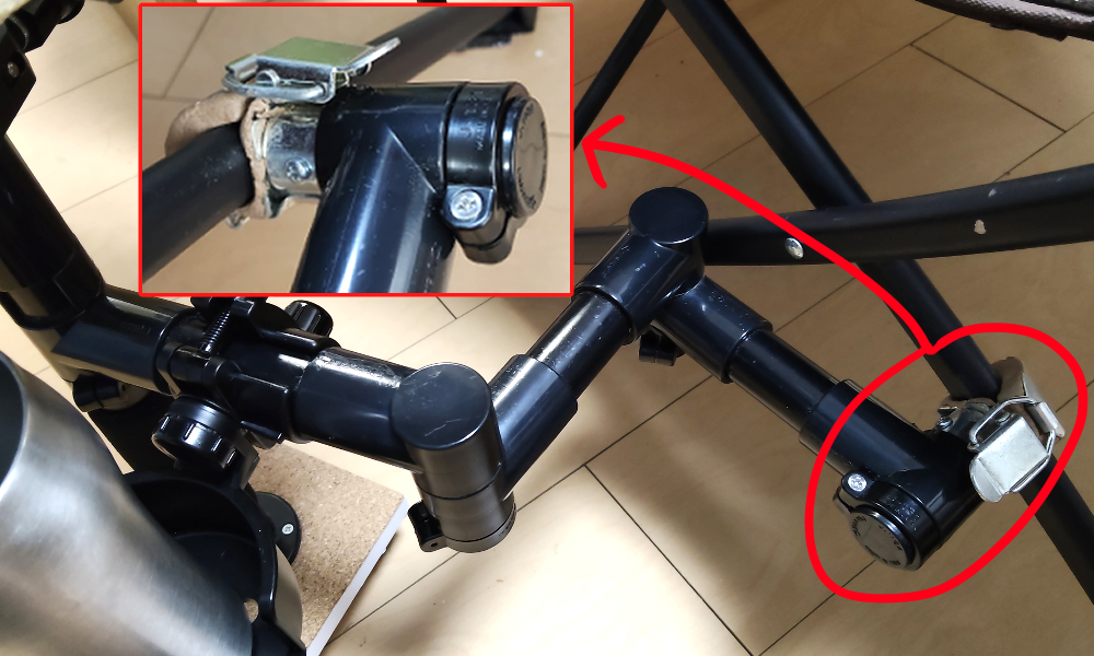 稼働アームをEF-2005Aと粘土で作ったブラケットで椅子と直結しています。