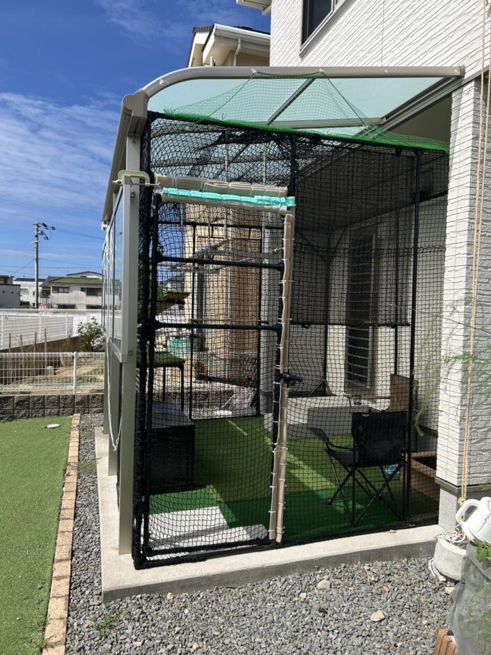 1つ目は、空間全てをイレクターパイプとネットで囲って、秘密基地のような空間を作ったことです。猫も人も共に快適な空間を目指しました。