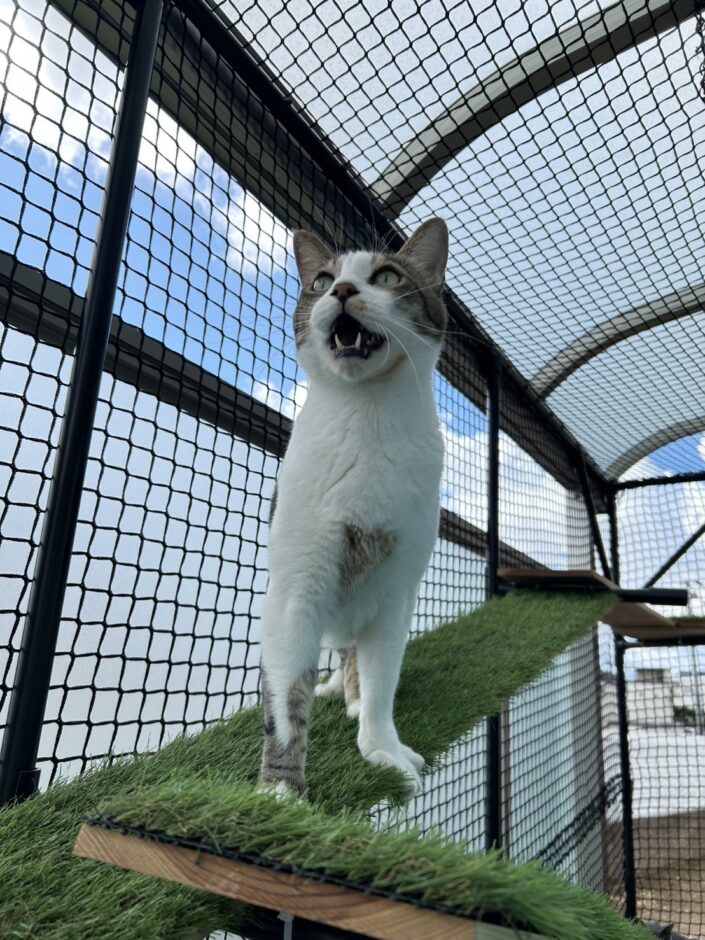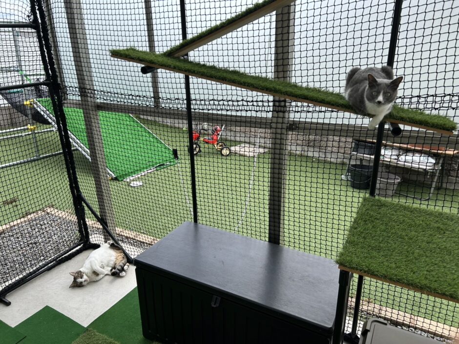 2つ目は、猫達が自由に動けるように、スロープや階段をつけたことです。こうすることにより、猫たちは日々好きな場所で外の空気を感じられるようになりました。