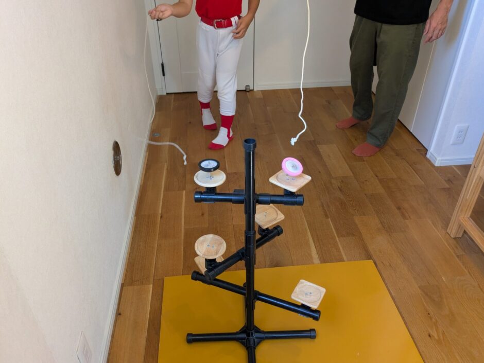 コマ回し初心者は床で回すところから始めるのですが、次のレベル(手のひらに乗せて回す)に進むための練習ツールとして、または上級者の技術披露のパフォーマンスツールとして練習会や家庭で活躍中です!
