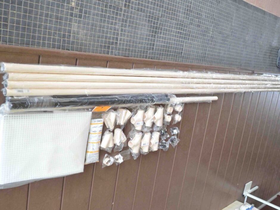 イレクターパイプ3000㎜×4、2000㎜×1、1500㎜×1、900㎜×2 イレクタージョイント×24 サンアロー接着液