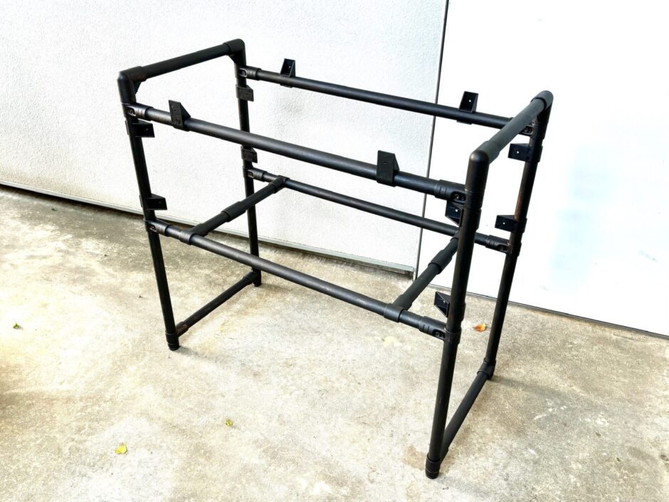 強度がしっかり確保できるだけでなく、イレクターの武骨な感じと木の組み合わせがクールで、カッコいいスタンドができました。