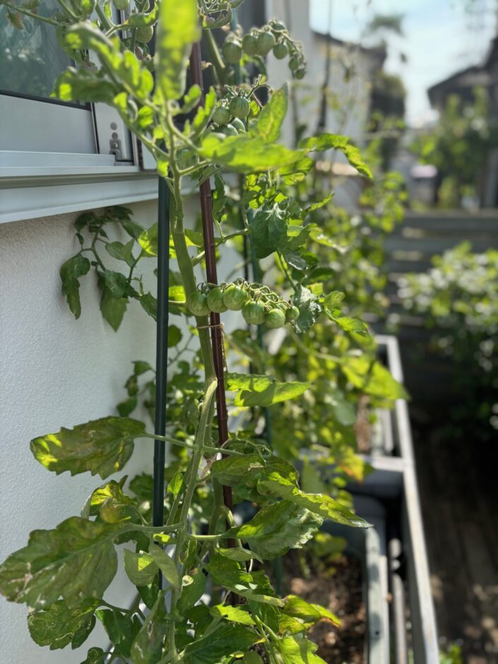 以前は木製のスタンドを自作していたのですが、経年劣化でボロボロになってしまったので、イレクターの骨格に、プランターの目隠しになる板を取り付ける形にしてみました。