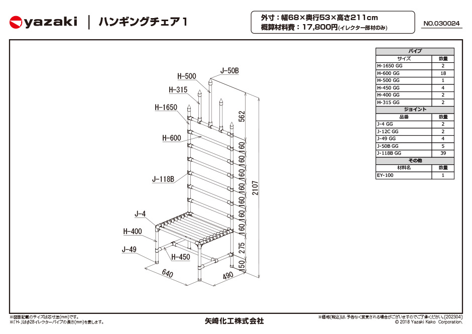 | 概算材料費 | 17,800円(イレクター部材のみ) |