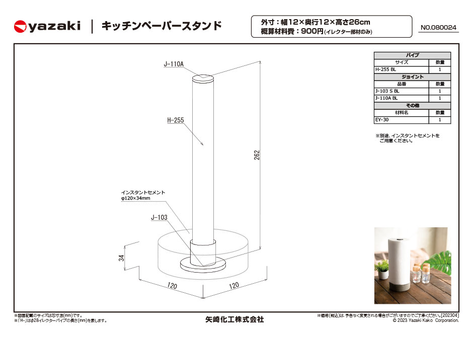 | 概算材料費 | 900円(イレクター部材のみ) |