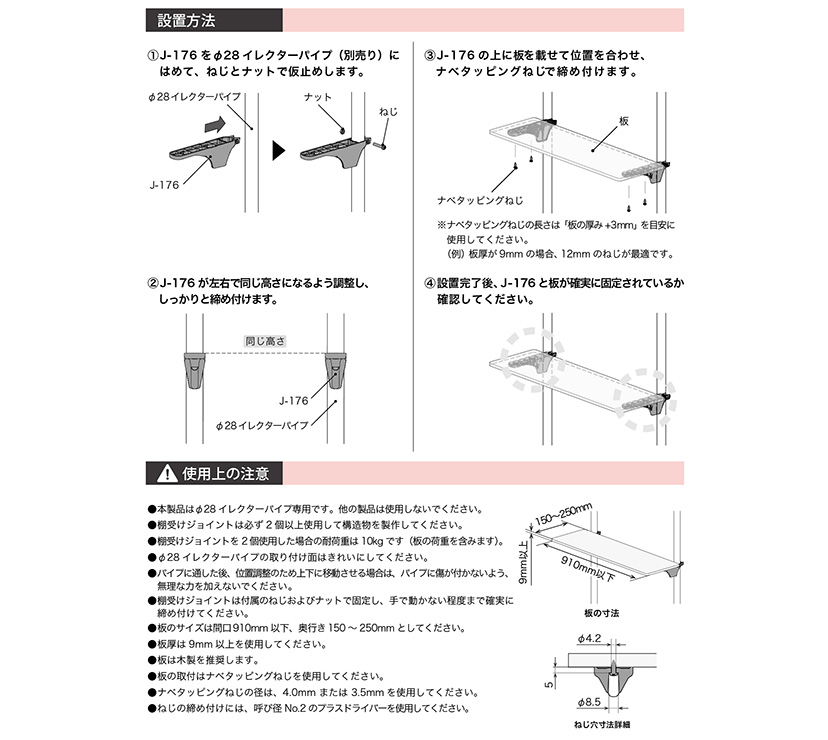 ※本製品には、板およびナベタッピングねじは付属しておりません。別途ご用意ください。